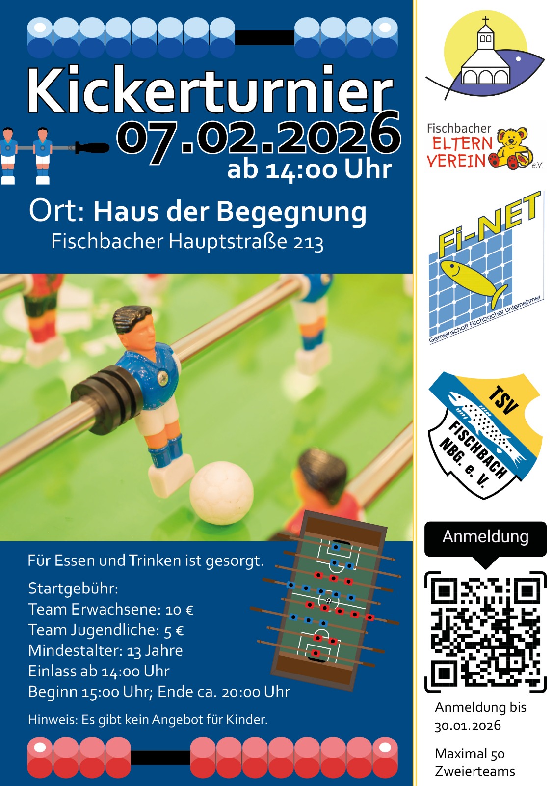 Kickerturnier am 07.02.2026 im Haus der BegegnungStartseite von Stephan Reimer TSV Fischbach Nbg. e.V. Beitrags-Navigation Vorheriger BeitragNächster Beitrag Schreibe einen Kommentar Antwort abbrechenDu musst angemeldet sein, um einen Kommentar abzugeben.